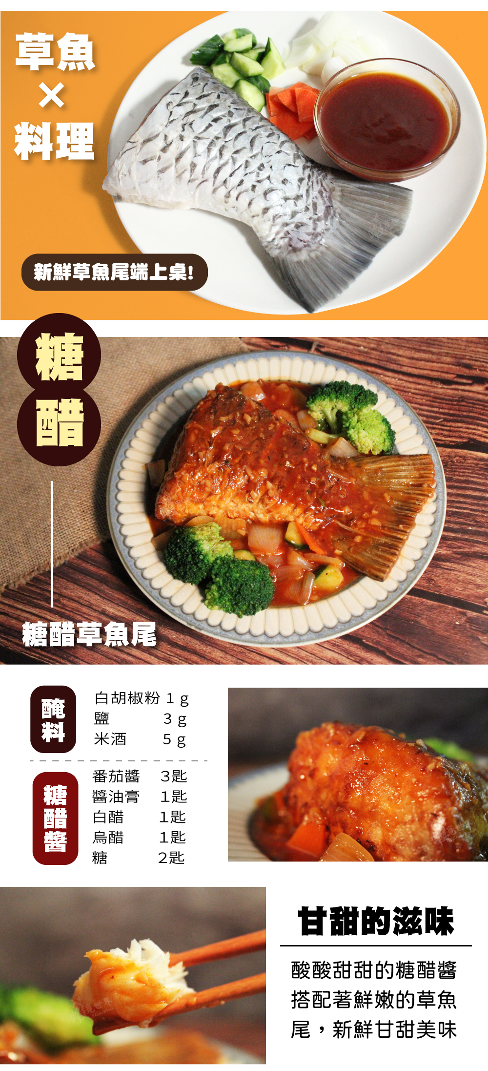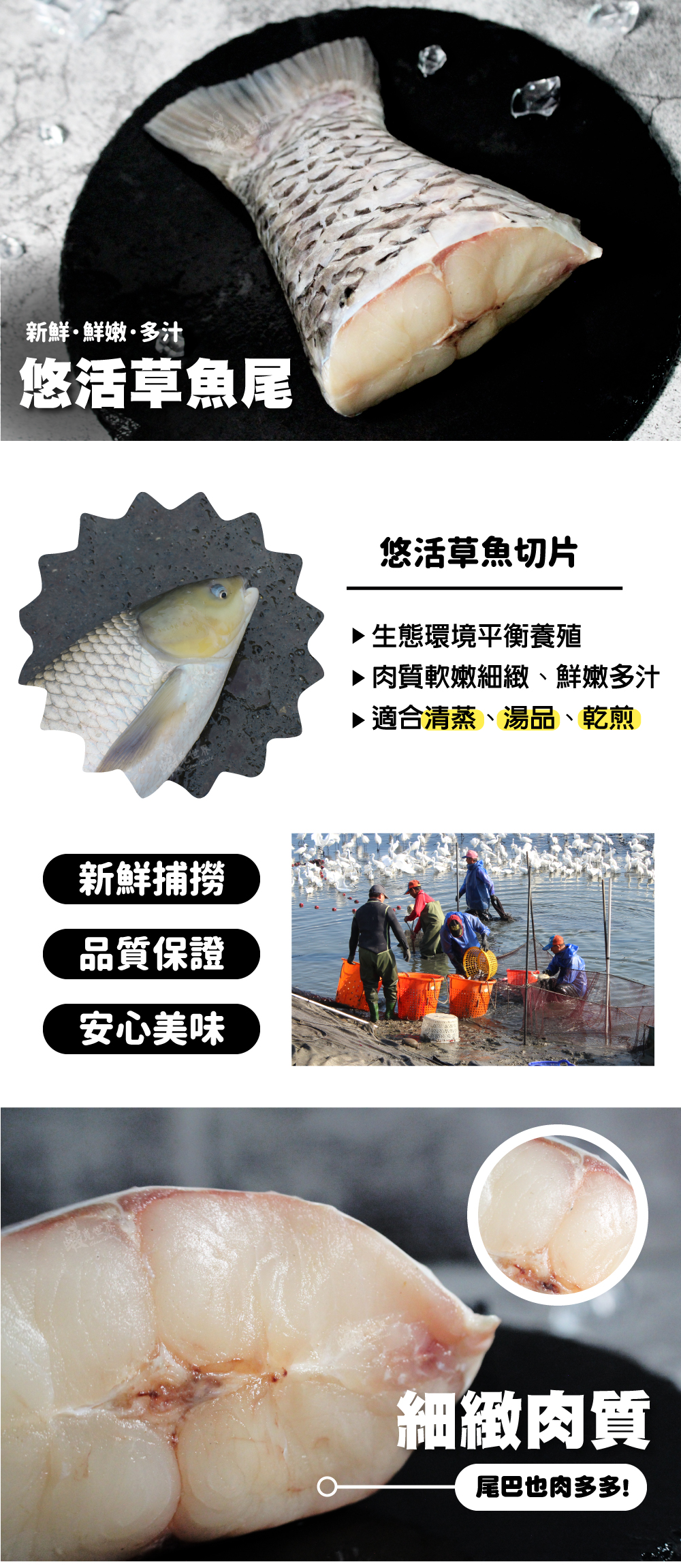 >草魚尾是運動量最大的部位,肉質滑嫩有彈性
