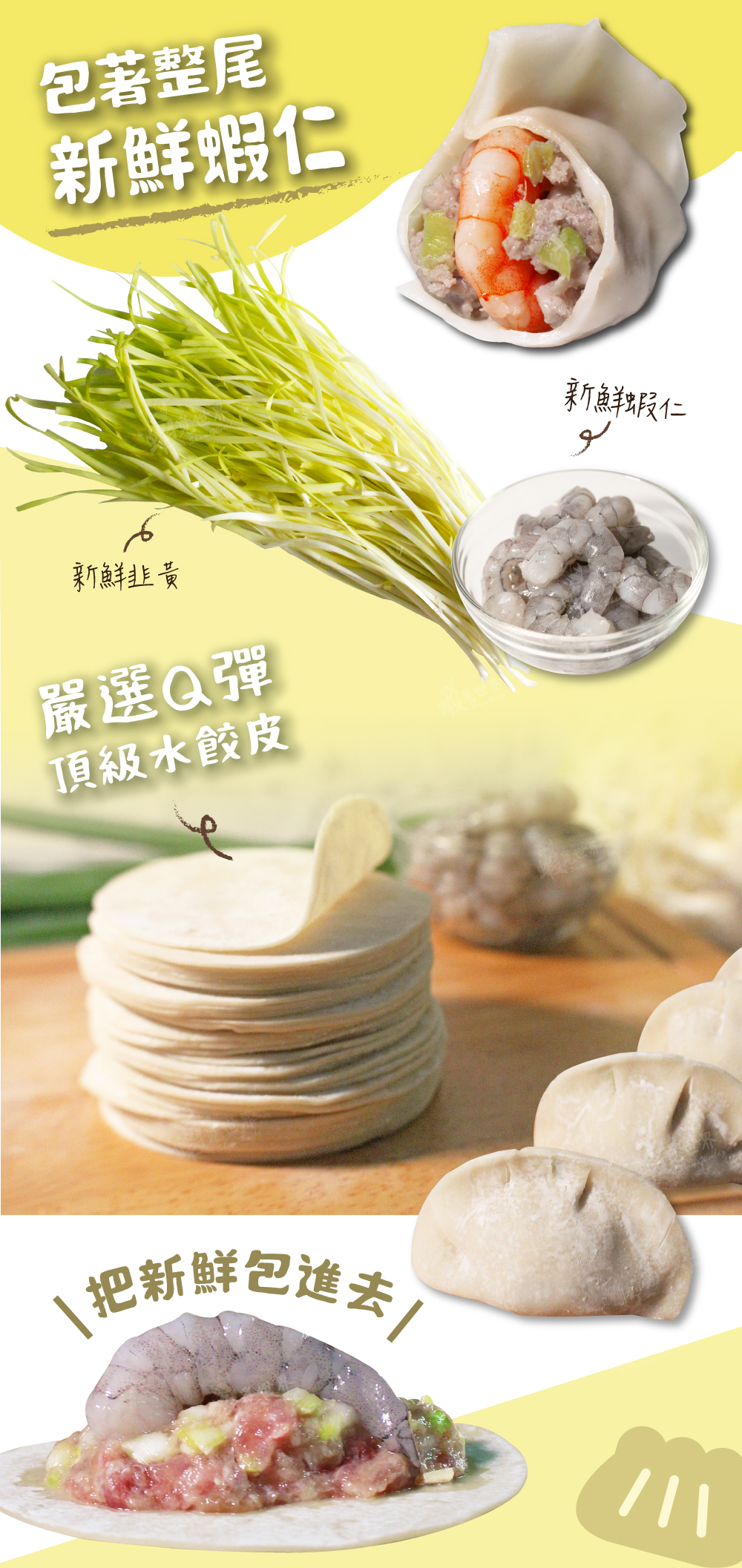 食用方法 :水滾加少許鹽巴後下水餃,持續攪拌至再水滾後約6分鐘,至水餃全浮起後撈起水餃再關火