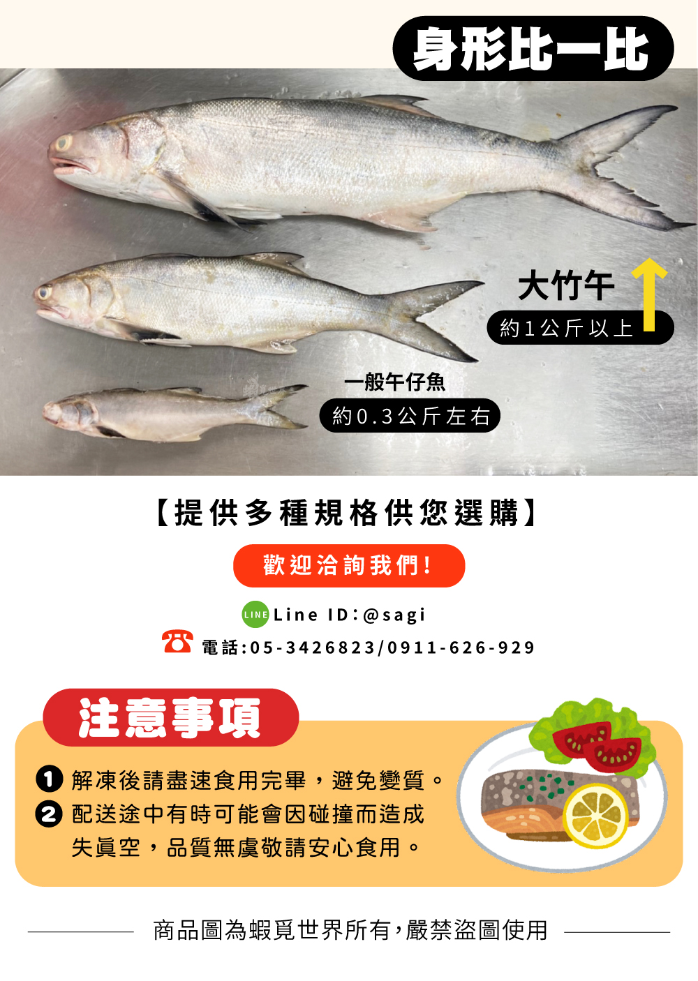 ※ 有2~3公斤和5~6公斤的整尾販售(已處理好做輪切片)歡迎來電洽詢。