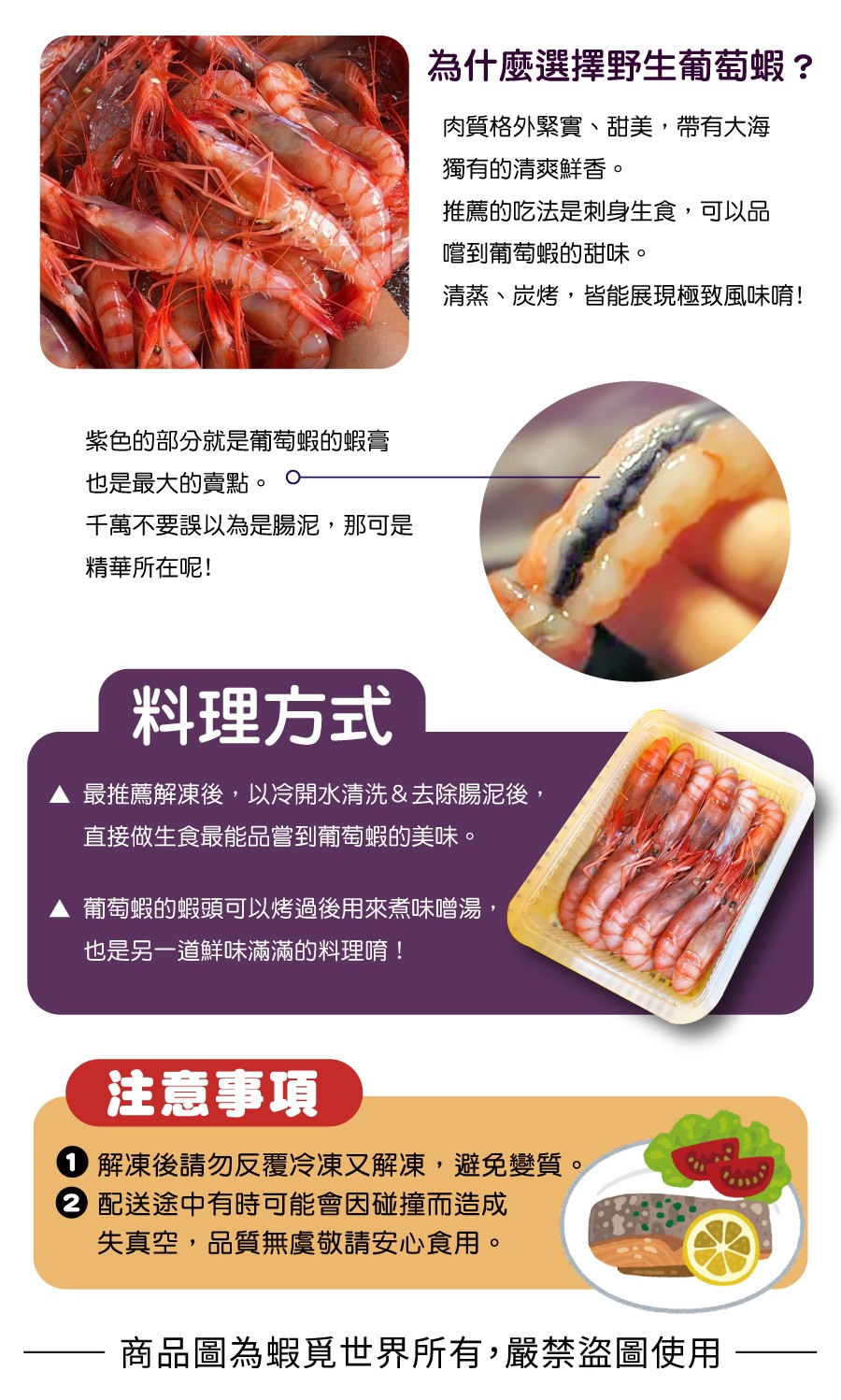 極致鮮味:葡萄蝦的蝦膏呈現非常獨特的紫色。
