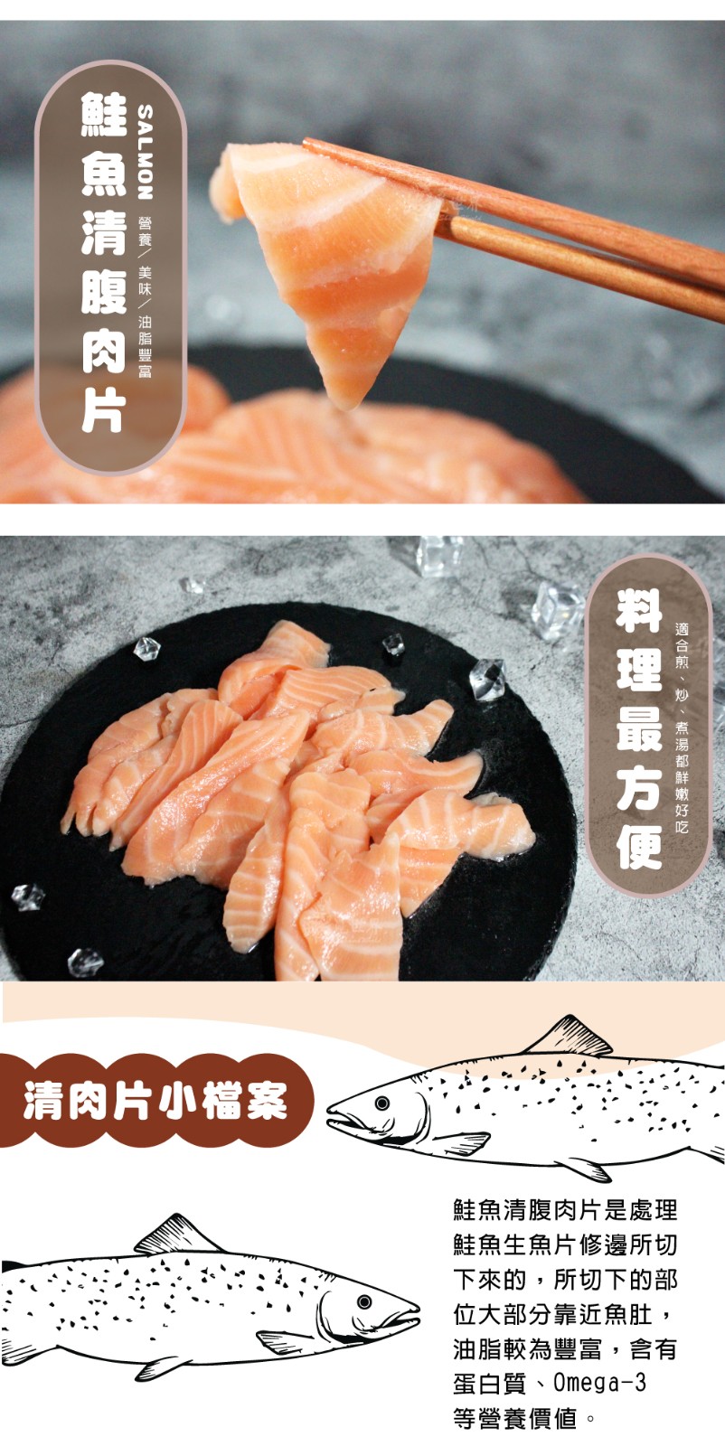 ※此商品是處理鮭魚生魚片修邊所切下來的,有大小片為正常現象,已去刺,仍請注意小心食用。