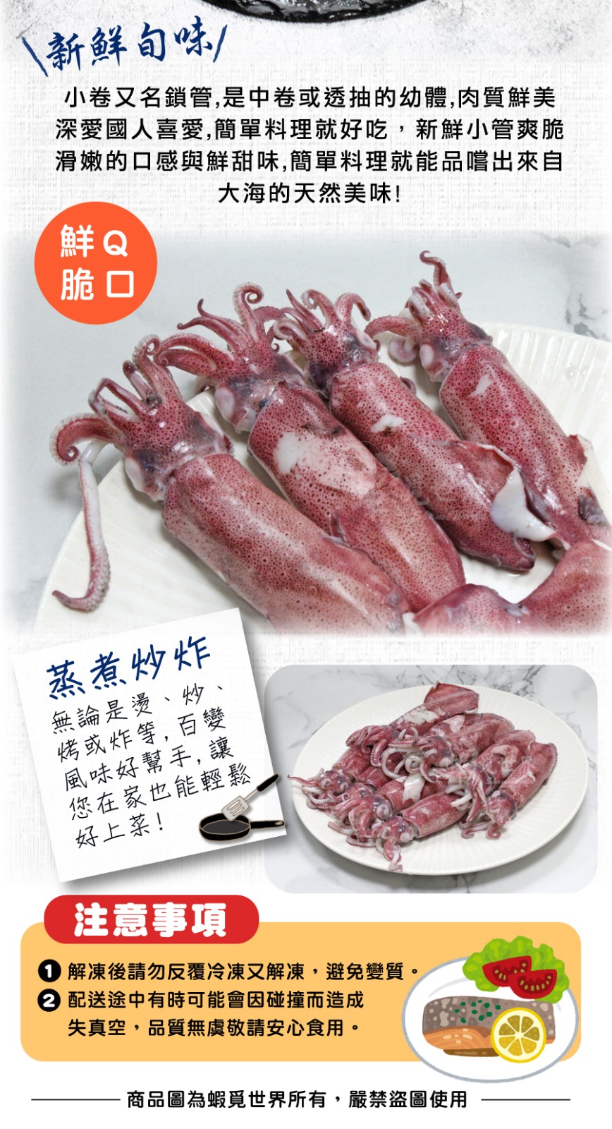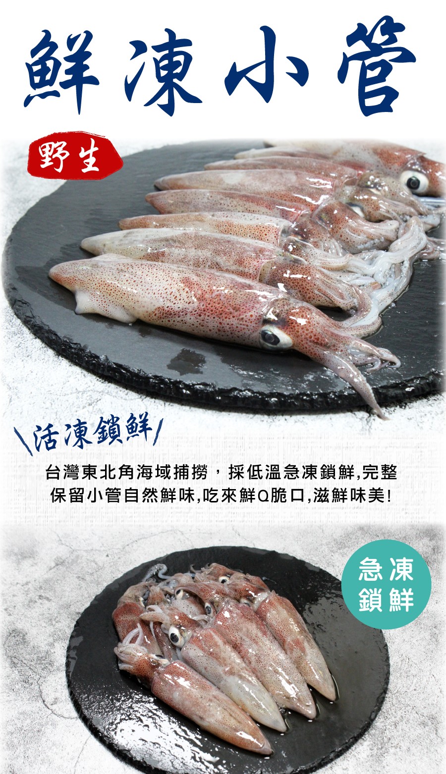 採低溫急凍鎖鮮,完整保留小管自然鮮味